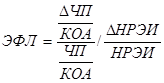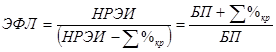 ЭФРз-е = (1 – ставка налога на прибыль) × (экономическая рентабельность активов – средняя расчётная ставка процента за кредит) × заёмный капитал ⁄ собственный капитал,