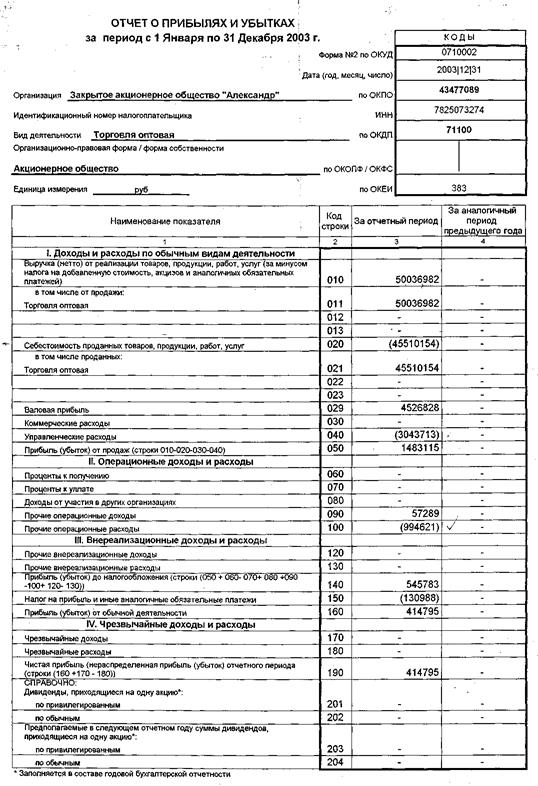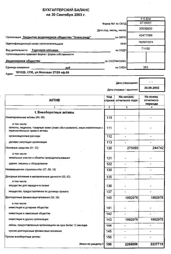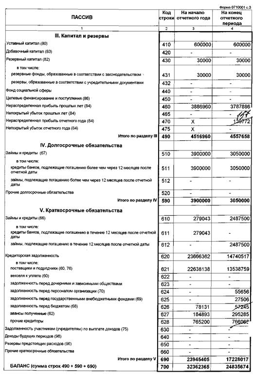 Структура предприятия "собственный капитал – заемные средства" имеет значительный перекос в сторону долгов, предприятие может обанкротиться, если несколько кредиторов одновременно потребуют свои деньги обратно в "неудобное" время. Следует обратить внимание на низкие коэффициенты срочной и абсолютной ликвидности. Это указывает на большую дебиторскую задолженность и снижение платежеспособности ЗАО "Александр".