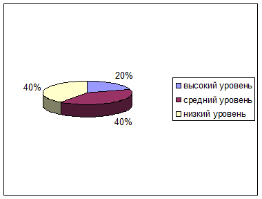 Таким образом, по результатам выполнения задания №1 мы определили, что лишь 2 ученика(20%) достигли высокого уровня. Четверо учеников(40%) находятся на среднем уровне и четверо(40%) на низком уровне.