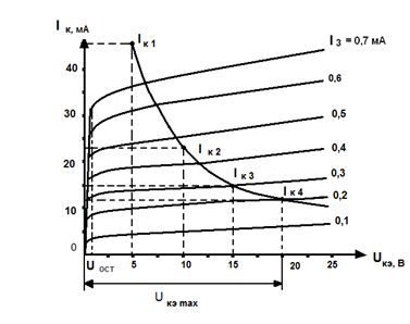 Тип транзистора оконечного каскада выбирается по максимальной допустимой рассеиваемой мощности коллектора Рk