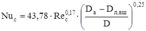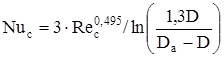 NU_s=3*(RE_s^0.495)/ln (1.3*D/(Da-D));