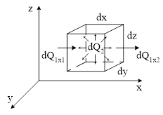 На рисунке 1.1 показаны только тепловые потоки, направленные вдоль оси x. Поток, притекающий слева, исходя из закона Фурье: