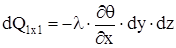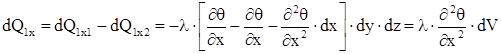 Суммарный тепловой поток, притекающий в объем dV за счет теплопроводности: