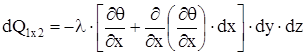 тепловой поток, проходящий через противоположную грань (с учетом изменения производной ∂θ/∂x на интервале dx):