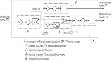 Целью подсистемы А является получение пастеризованного молока 1% и 2,5% жирности по ГОСТ и сливок по ОСТ