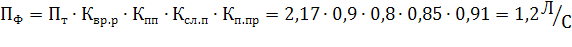 Для нахождения фактической производительности, учитываем все потери имеющие место в производстве.