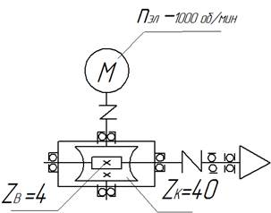 Рисунок 6. Принципиальная кинематическая схема привода сепаратора Г9 – КОВ