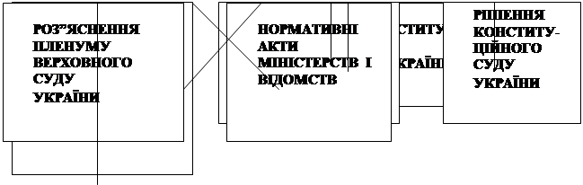 Зрозуміло, найчастіше таку роль грають нормативні акти, що видаються керівниками правоохоронних органів. У відповідності зі ст. 15 Закону про прокуратуру Генеральний прокурор України відповідно до законів України видає накази, розпорядження, затверджує положення та інструкції, обов’язкові для всіх органів прокуратури , до яких відносяться, як відомо, і прокурори, що підтримують державне обвинувачення, що виносять протести на судові рішення, що дають висновки у вищих інстанціях, і слідчі, що розслідують кримінальні справи.