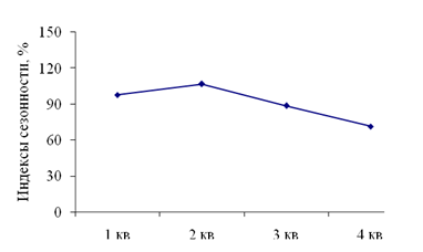 2.3 Расчет квартальных индексов сезонности товарооборота