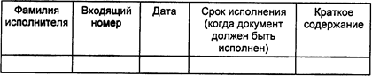 Зарегистрировав полностью документы, расставляют карочки по срокам исполнения, т.е. каждую карточку ставят за то число, на которое документ должен быть исполнен. На отдельные карточки выписываются и все пункты распорядительных документов. В произвольной форме можно записывать на карточку и устные поручения руководства.
