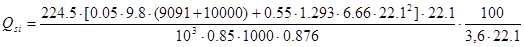 =(0,04∙(9091+10000)∙9,81+2728,1)∙24/1000∙0,9408=260,7 кВт