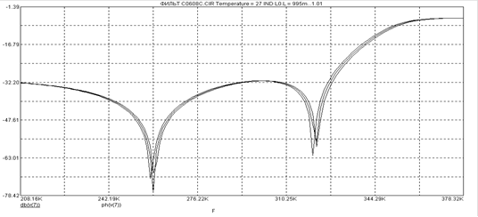 Изменяя индуктивности в интервале ±dL=0,5%, получим: