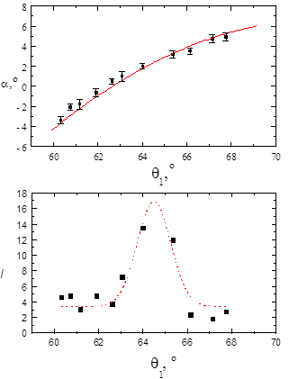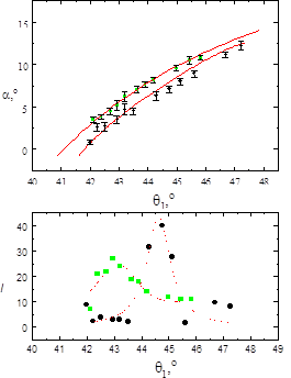 представлені результати вимірювань для однієї серії, в рамках якої зберігалися постійними кут падіння q2=410