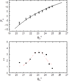Мал.21. Перебудовна крива (1) aqі інтенсивність розсіяного випромінювання I(1) qпри вугіллі падіння q2=00