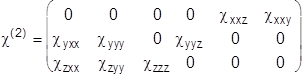 Тензор квадратичної сприйнятливості (2)c однорідних кристалів ніобіту літію, що використалися в даній роботі, має вигляд [5]:
