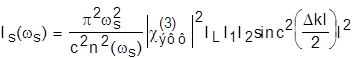 де А - перетин розсіюючого об'єму V, l - довжина кристала. Тоді потужність, що розсіюється на частоті ws