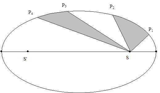 описывает равные площади за равные промежутки времени (второй закон Кеплера), точка Р