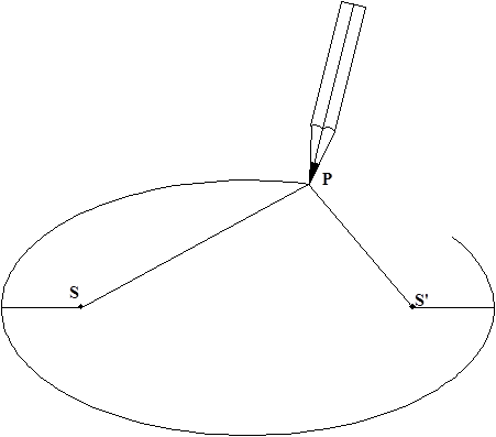Держа нить натянутой, ведем карандашом по бумаге, и он вычерчивает окружность. А как вычертить эллипс с фокусами в точках S