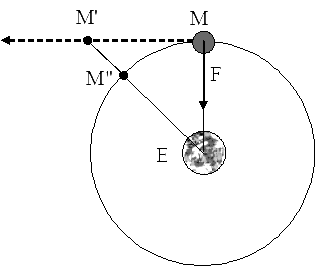 Рисунок 1.6. Если б гравитационное взаимодействие исчезло, то Луна полетела бы по прямой (касательной к кругу).