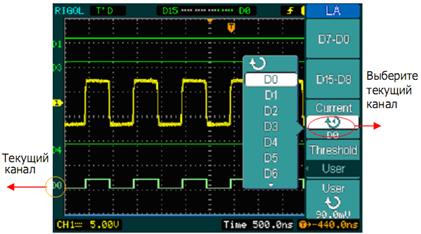 Рис. 5. Виведення на екран і переміщення осцилограм в цифровому осцилограф змішаних сигналів RIGOL Більш дорогі прилади мають кольоровий дисплей (див. Рис. 5.)