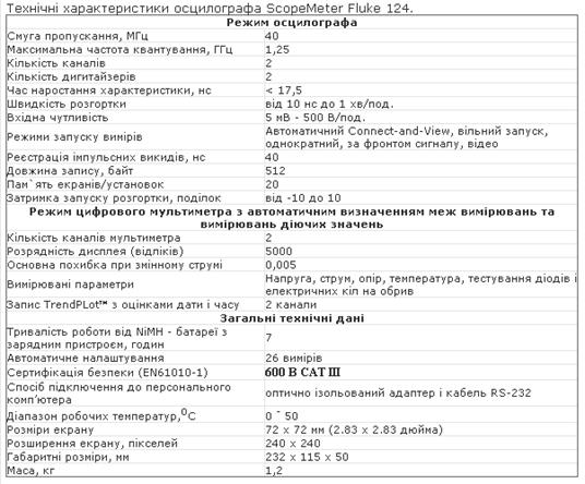 Двоканальний осцилограф має смугу пропускання до 40 МГц, подвійний мультиметр із розширенням дисплею 5000 відліків дозволяє вимірювати середньоквадратичні значення змінної складової сигналу, двоканальний самопис функціонує у режимі TrendPlot, повне автоматичне налаштування розгортки дозволяє розпізнавати сигнал і оптимізувати його розміщення на дисплеї. Такий синтез функцій робить прилад практично універсальним, він дозволяє забезпечувати швидкий і якісний моніторинг будь-яких електричних систем.