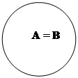 1. Совпадение объемов, когда объем одного понятия равен объему другого. Такие понятия называются взаимозаменяемыми. Например, «геометрическая фигура с тремя углами» и «треугольник» (соответственно А и В).