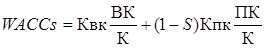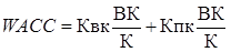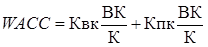 де Квк — очікувана ставка вартості власного капіталу; Кпк — очікувана ставка вартості позичкового капіталу; К — сума капіталу підприємства; ВК — сума власного капіталу; ПК — сума позичкового капіталу.