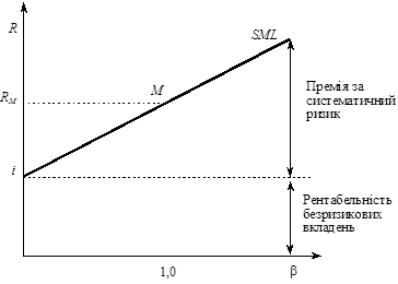Модель САРМ характеризує процес формування ринкової ціни окремих цінних паперів (інших об’єктів реальних і фінансових інвестицій) за умов досконалого ринку капіталів та з урахуванням систематичного ризику (b-коефіцієнту), який не підлягає диверсифікації.