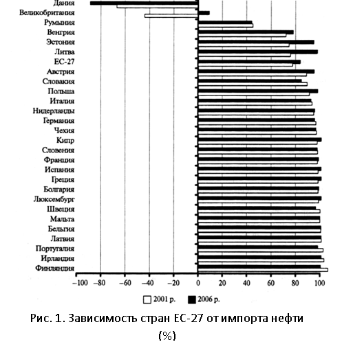 До недавнего времени только две страны Евросоюза — Великобритания и Дания - полностью удовлетворяли внутреннее потребление энергоресурсов за счет собственного производства (рис. 1). Однако в Великобритании ситуация сейчас поменялась, и стране приходится решать проблему изменения климата в новых и достаточно непривычных условиях — адаптации к усиливающейся энергетической импортозависимости.