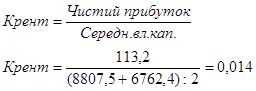 3. Коефіцієнт ефективності використання власного капіталу (рентабельність власного капіталу) – показує, скільки чистого прибутку припадає на 1 грн середньорічного власного капіталу.