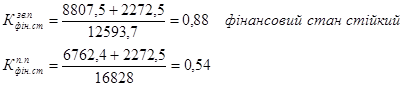 6. Коефіцієнт фінансової стійкості – характеризує ступінь фінансової стійкості підприємства. Нормативне значення – 0,7