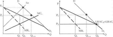 ). Если фирмы будут действовать в условиях чистой конкуренции, то отрасль окажется в положении равновесия при цене Рк