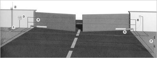 6. Устройство внешней разблокировки 7. Стойка для фотоэлементов H=0,5м; H=1м