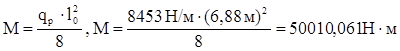 Изгибающий момент от расчетной нагрузки в середине пролета