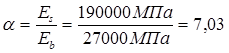 Коэффициент приведения арматуры к бетону α при модуле упругости арматуры класса A-V = 190000 МПа равен: