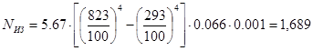 Диаметр выходного отверстия печи м, тогда площадь излучаемой поверхности  .