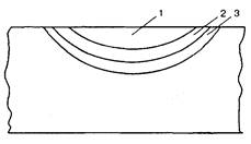 При плазмовому термозміцненні окремі шари оброблюваної ділянки прогріваються по глибині до різних температур, унаслідок чого зона термічної дії (ЗТД) має шарувату будову. Залежно від мікроструктури і мікротвердості в сталях по глибині ЗТД розрізняють три шари (рис.3.1).