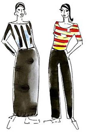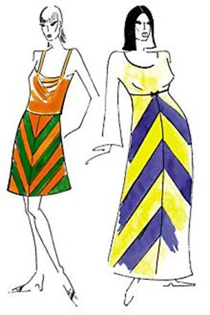 Выбирая расположение полос на полосатой ткани (вертикальное или горизонтальное), можно, например, придать полной фигуре стройность, учитывая ширину, частоту и ритмичность полос.
