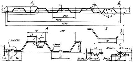 2 - размеры профилированного листа в миллиметрах