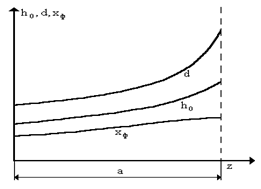 Размеры первой и последней ступеней характеризует степень раскрытия проточной части турбины, то есть изменение её диаметров. Нужно стремиться обеспечить плавность изменения диаметров вдоль проточной части, что особенно трудно выполнить при проектировании ЦНД конденсационных турбин. Определение числа ступеней турбины и разбивку теплоперепадов по ступеням производят графоаналитическим методом. В ЧНД это отношение увеличиваем от ступени к ступени, достигая в последних ступенях хф