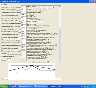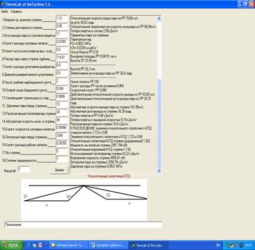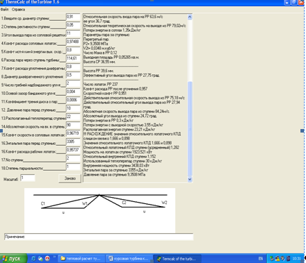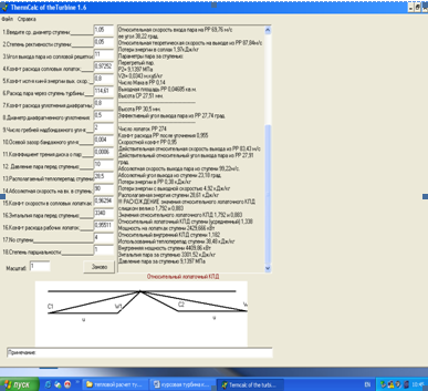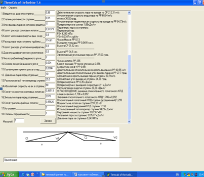 Детальный расчет промежуточных ступеней необходимо выполнять на ЭВМ, программе TermCalc of the Turbine 1.6. И рассчитаем эти параметры: расход пара D, параметры пара перед ступенью: давление Р0