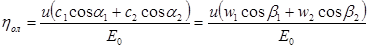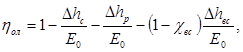 , потери энергии в решетке , потери энергии с выходной скоростью , располагаемая энергия ступени , относительный лопаточный КПД ηол