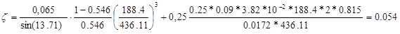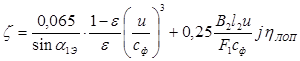 - коэффициент, учитывающий отклонение отношения скоростей u/сф