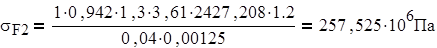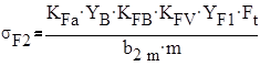 Расчётное напряжение изгиба в зубьях колеса