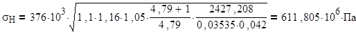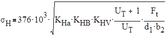 Проверка зубьев колёс по контактным напряжениям расчётного контактного напряжения