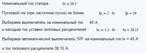 Выбор автоматического воздушного выключателя осуществляется по номинальному току двигателя.