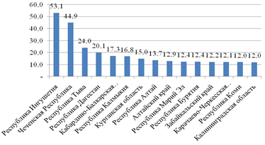 Наихудшим образом с безработицей дела обстоят в Республике Ингушетия, Чеченской Республике, Республике Тыва, Республике Дагестан, Кабардино-Балкарской Республике.