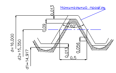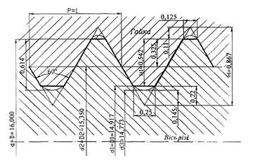 Рис. 4 Метрична різь М16х1-6Н/6g