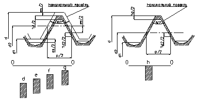 Рис. 5 Положення полів допусків зовнішньої різі з основними відхиленнями d, e, f, g з основним відхиленням h