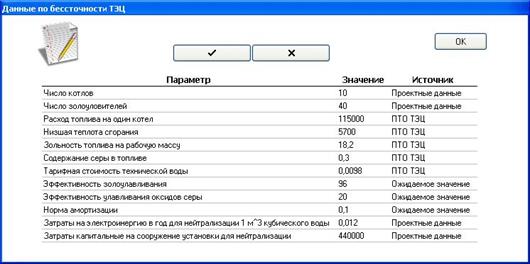 Данные по бессточности ТЭЦ открывает доступ к работе с таблицей данных для ввода необходимых значений (рисунок 4). Редактированию подлежит только поле "Значение".